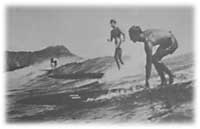 upon wooden boards in the surf of the Pacific Ocean did so between